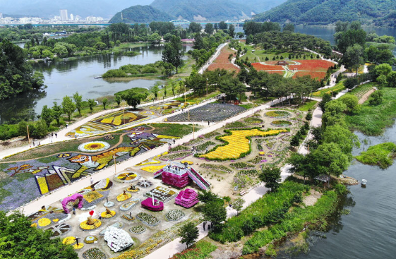 - 청평호의 푸른 물빛과 산들의 초록이 어우러지는 경치